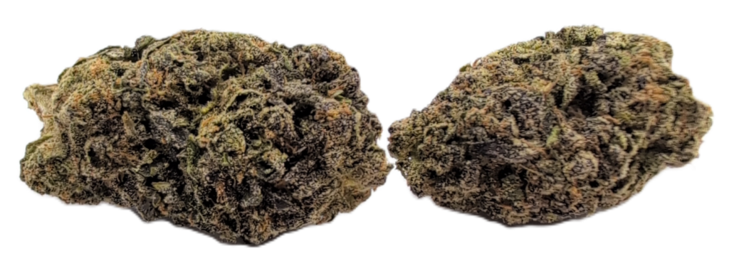 Airheadz is a slightly indica dominant hybrid strain (55% indica/45% sativa) created through crossing the delicious Runtz X Pink Runtz strains. Named for the iconic candy, Airheadz packs a delicious flavour with soothing, lifted effects that hit the brain before taking on the body. Like its namesake candy, Airheadz has a sweet and sugary fruity berry flavour with a lightly sour exhale. The aroma is very similar, with a sweet and fruity overtone accented by a punch of gassy diesel and spicy earthiness. The Airheadz high settles in a few minutes later, starting in the mind before taking on the body. You’ll find your cerebral state activated with a budding creativity that lifts the spirits and fills you with a sense of calm. This soothing sense will soon wash throughout your entire body, leaving you fully relaxed from head to toe and without a care in the world. Airheadz is often chosen to treat those suffering from conditions such as chronic pain, headaches or migraines, chronic stress, depression and cramps or muscle spasms. This bud has dense spade-shaped forest green nugs with deep purple undertones, lots of thin orange hairs and a coating of tiny, dark purple-tinted white crystal trichomes.