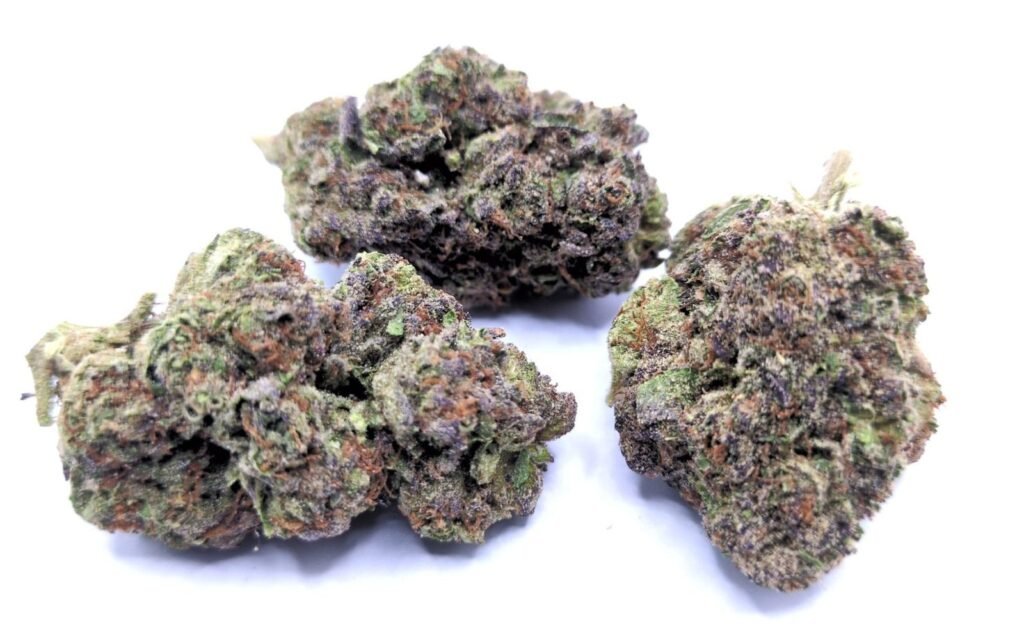 End Game is an evenly balanced hybrid strain (50% indica/50% sativa) created through crossing the potent Ethos Cookies #4 X Purple Sunset strains. Named for its day-ending high and long-lasting effects, End Game is the perfect heavy hybrid to help you really settle down and get to sleep after a long and stressful day. This bud has a sweet and fruity berry grape aroma with a spicy and nutty diesel aroma to go along with it. End Game buds have oversized and super dense diamond-shaped minty green nugs with light purple undertones, thin orange hairs and a frosty, thick coating of tiny, purple-tinted white crystal trichomes.