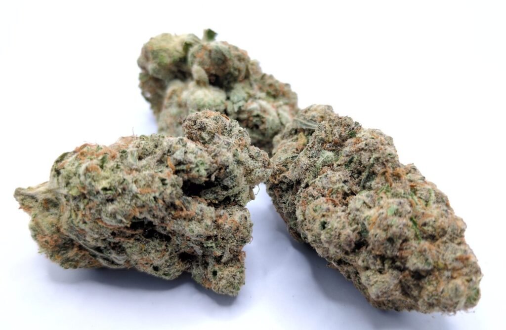 Wedding Cake a hybrid with indica-dominance. It is attained by crossing Triangle Kush and Animal Mints. It gives an exceptionally sweet aromatic essence and a fruity flavor. The taste is a perfect combination of sweetness of cookies and fruitiness of a cherry pie. It works as a calming agent and appetite stimulator, and is quite helpful for patients who experience regular depression-associated syndromes, fibromyalgia, MS and other such related symptoms. It may act as a sedative for patients, but does help in calming down nerves or controlling anxiety stimulating symptoms.